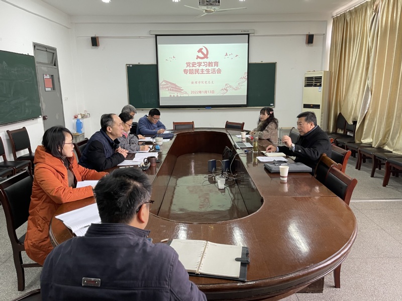 1月13日上午,数理学院党总支在11-302会议室召开党史学习教育专题民主生活会,校党委常委、副校长陈光曙,校党委组织部组织科科长卢丹列席会议,学院党总支全体委员参会,会议由学院党总支书记何涛主持。
