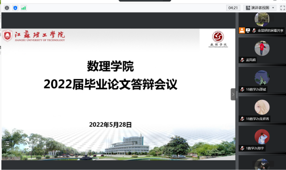 因受疫情影响,5月28日学院通过腾讯会议线上方式组织开展2022届本科生毕业论文答辩工作,数学与应用数学、统计学两个专业122名学生参加答辩,分成9个答辩组。