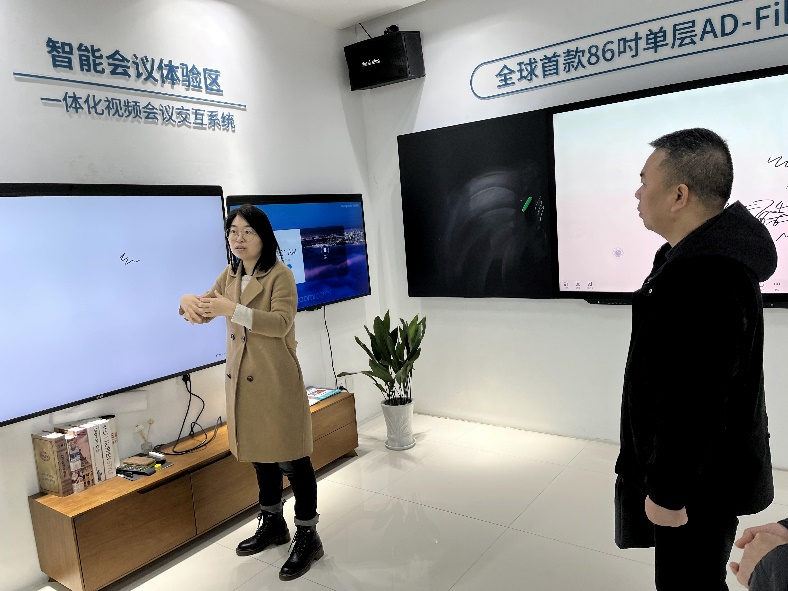苏大维格光电科技集团股份有限公司副总裁周小红热情接待来行人员,并介绍了苏大维格在光电技术方面的诸多应用。苏州未来人类笔记本电脑公司总经理曹斌就专业学科建设,企业历史沿革,应用型本科人才培养等方面和同行人员进行了热情洽谈。(图/文/ 张剑豪,审核/朱小芹,编辑/张永政)