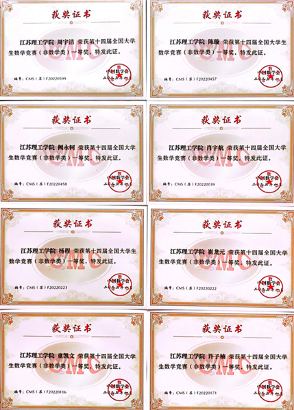 近日,第十四届全国大学生数学竞赛江苏赛区成绩揭晓,我校在数学专业组B类竞赛中共有16位同学获奖,其中一等奖6人、二等奖4人、三等奖6人;在非数学专业组竞赛中共有36位同学获奖,其中一等奖8人、二等奖15人、三等奖13人,参赛成绩喜人。