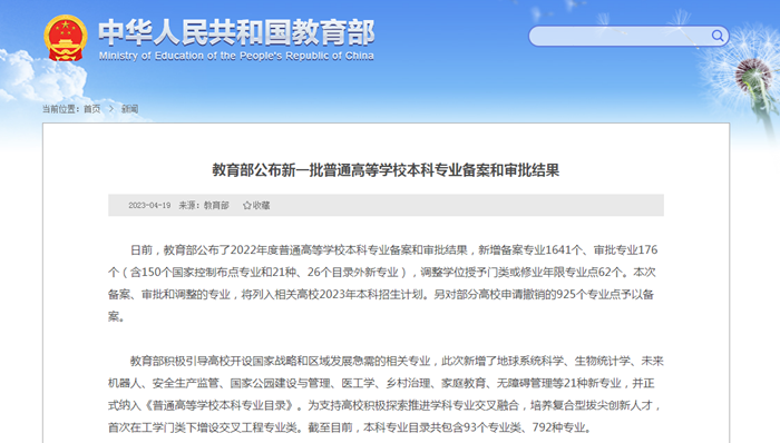 近日,教育部发布《教育部关于公布2022年度普通高等学校本科专业备案和审批结果的通知》(教高函〔2023〕3号),我院成功获批光电信息材料与器件新专业,这是我院继2021年数学与应用数学专业、统计学专业入选江苏省一流本科专业,2022年数学与应用数学专业通过教育部师范类专业第二级认证以来,在“十四五”期间专业建设方面取得的又一进步。