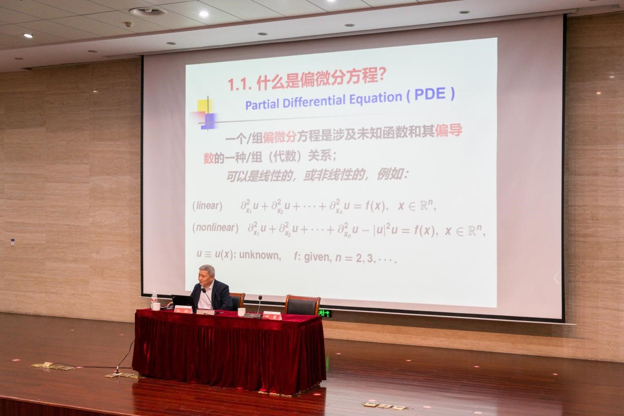 报告会上,江松院士结合航空航天、能源环境等领域的实例,阐释了偏微分方程在科技工程中的核心作用,并分享了流体力学领域的最新成果。作为国际知名的应用数学家,江松院士以“数学是连接理论与工程的桥梁”为引,鼓励青年学子在基础研究中勇于突破,服务国家重大需求。