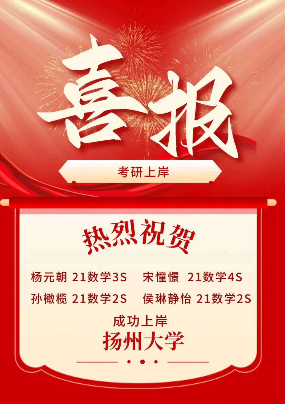 考研喜报(四)|我院4名学子成功上岸扬州大学