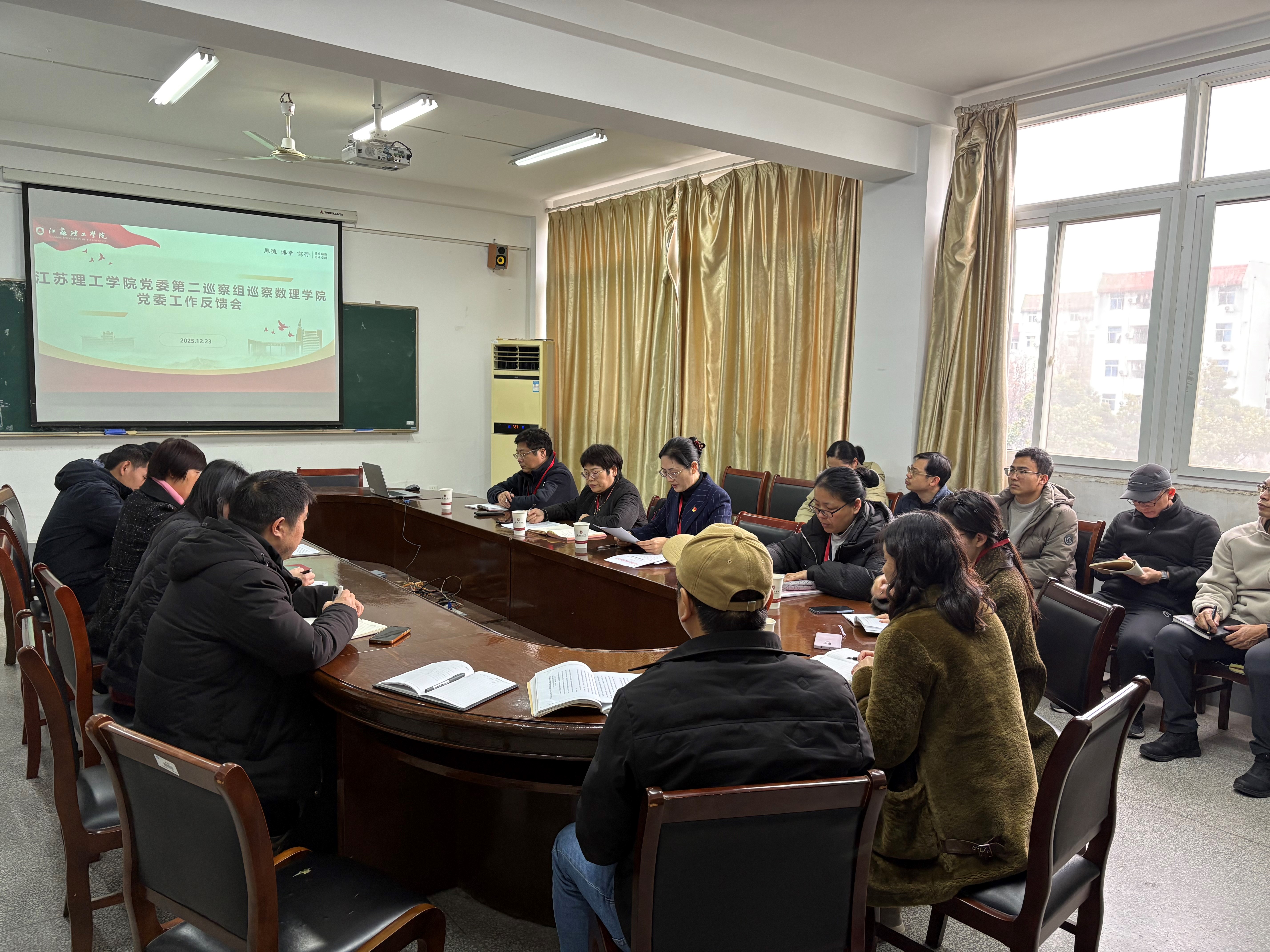 根据校党委巡察工作安排,20251223日,第二巡察组巡察数理学院党委工作反馈会在11号楼302会议室召开。谢芳代表巡察组向数理学院党委领导班子反馈了巡察情况,薛梅青对抓好巡察整改工作提出要求。季敏主持会议并作表态发言。